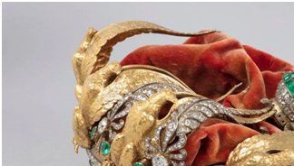 Crown toh eighta golden eagles praekta missing ase kun toh adorned kurishey, hoileh b taikhan 56 emeralds aro sop 1,354 diamonds retain kurehkhalidostachari kina. 19th Century Crown ke restored kuribokoisheytaila original state te reconstruction nalagi kina. Expert committee museum la president Laurence des Cars pra led kurakechunishey restoration supervise kuribo leh.