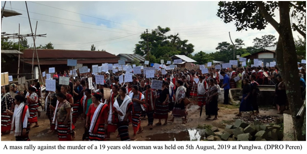 Peren, 05 August: Punglwa bosti laga 19 sal maike Mrs. Paugumcule ke moraideya (murder) nemide 5th August, 2019 deh mass rally koise. Rally toh Northern Zeme Organizations para ola laga ase.