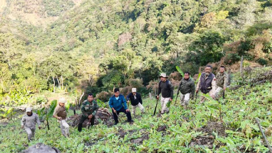Imphal, January 28, 2026: Manipur laga Tengnoupal te. Security Forces khan para 5 Acres laga illegal Poppy Bagan bia kurishe koishe. Yete taikhan illegl Drug Supply Chain bitor te operation kurea homoi te.