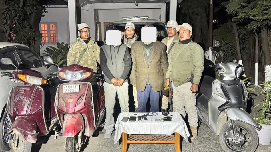 Imphal, January 11, 2026: Manipur Police khan para duata senior cadres, kun KCP (Noyon) laga member ase, tai jun ke dure she, Imphal West laga tinta jaga te bunduk para hamla kurea laga mamla opor te, January 9 te. Etu arrest toh investigators khan Langjing Achouba, Ghari aro Sangaiprou te CCTV laga footage khan sa piche, tai khan laga jankare pa piche te kure she. Durea khan laga nam toh Khaidem Ranjit ase, tai toh 65 sal ase, aro tai toh Sagolband Moirang Hanuba te buhea koi she, tai laga ghor para he tai ke dure she koishe. Aro alak laga nam toh Sanasam Biramangol ase, tai toh 63 sal ase, aro tai toh Phumlou te para dure she. Dua jun ke be January 10 te dure she Police khan para. Police khan M-20 pistol aro gule pai she, hamla te chola laga, aro tinta scooty aro ekta mobile phone pai she koishe. Etu duata manu toh eight bunduk laga hamla kurea laga mamla logo te link ase koishe, Dr Loken laga ghor te hamla te be tai jun connection ase koishe. Aro alak operation te, January 10 te security forces khan Kangpokpi district laga Awlmun bosti te bunduk khan pai she koishe. Tai khan AK-47 rifle, sex alak bunduk, charta mortars, duata grenade aro 38 guli, larai kurea laga kapor, aro hath te durea laga radio set khan pai she etu operation te.