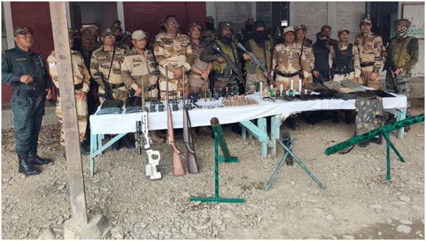 Churachandpur te. Authorities khan para M-16 Automatic Rifle aru Magazine, duita Single Barrel rifle, duita 9mm laga Pistol aru Magazine, ekta mortar, duita Hand grenade, 3da 12 Bore laga khali daba aru duita wireless sets paishe koishe. Etu toh Mavom aru Nepali Basti te.