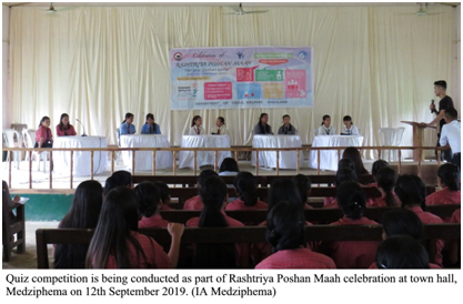 DIMAPUR,SEPTEMBER 14,2019: Poshan Abhiyan the Block Convergence Plan for Committee (BCPC) khan Medziphema District Administration logote milikena adolescents aro Essay writing aro Quiz competition school girls nimete 12th September 2019 town hall, Medziphema te loishe .