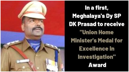 Shillong | March 2: Meghalaya state aro state police department nimite ekdum khusi laga khobor ekta te, Shri.D.K.Prasad,MPS,Dy.Superintendent of Police, East Khasi Hills, Shillong ke “Union Home Minister’s Medal for Excellence in Investigation” laga award dibole junise. Etu award toh Meghalaya laga police pora powa toh pohoila bar ase. Tai pora Indian Police Medal (IPM) aro Governor’s Medal bi pohoila paise.