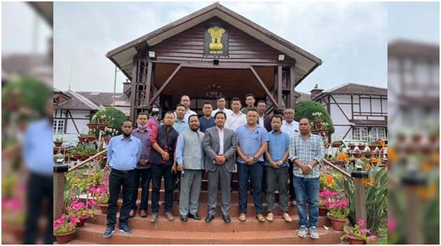SHILLONG: Meghalaya Chief Minister aro NPP president Conrad K Sangma aro Garo Hills Autonomous District Council (GHADC) te 15 MDCs elected kora manuh khan para Saturday din te Governor Satyapal Malik ke Raj Bhavan te notun Executive Committee (EC) bonabo nemite matishe koishe. Etu notun 15 MDCs members pithor te 11 jun toh NPP party para ase aro tin(3) jun independents aro 1 jun toh Garo National Council (GNC) para ase koishe. Notun coalition party laga nam toh Garo Hills Democratic Coalition (GHDC) ase koishe. “ami khan 15 MDCs para governor logot lok korishe aro tai ke notun coalation party bonabo nemite details kotha koishe,” koikena NPP chief para janaishe. Sangma para koishe ke, NPP MDC,  Raksamgre Benedict R Marak logot notun Chief Executive Member (CEM) hoboli toh coalition khan para fesla loishe. “Rakesh A Sangma (NPP MDC toh Babelapara) para ase aro tai toh GHADC laga chairperson thakibo, ami khan para aro Nikman Ch Marak (GNC MDC Rongrikkimgre) para tai toh Deputy CEM hoboli fesla korishe,” Sangma para aro janaishe. Chief minister para koishe ke, coalition khan para common minimum programme te jaboli fesla loishe, etu kam nemite soruh koriboli hoishe aro besi thiri nakorina details toh janai thibo”, koikena Sangma para aro koishe.