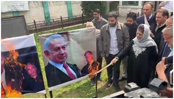 Mehbooba Mufti pra Netanyahu, Trump posters julai dishey pro-Khamenei chants time te