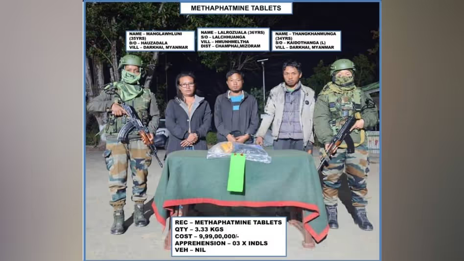 April 20, 2026: Yete Assam Rifles aru Excise aru Narcotics Department khan mili kina operation kurishe koishe, yete taikhan Mizoram laga Champhai District, Ngur jaga para Methamphetamine Tablets toh durishe koishe, aru etu toh RS 9.99 Crore laga daam ase koishe.