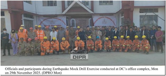 November 29, 2025, 08:42 PM: National Disaster Response Force (NDRF) para District Disaster Management Authority (DDMA) Monlogoteymilaikena, Earthquake Mock Drill Exercise conduct kurishey 29th November, 2025 tey, DC office complex Mon tey.