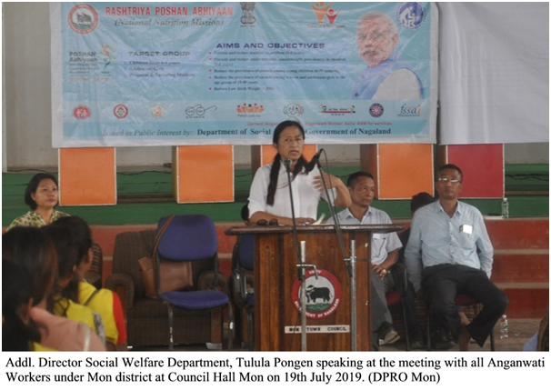 Mon, 19 July: 19th July 2019 deh Addl. Director, Department of Social Welfare, Tulula Pongen para Mon district pathor deh thaga sob Anganwati Workers khan logode meeting loise. Meeting toh Council Hall, Mon deh loise.