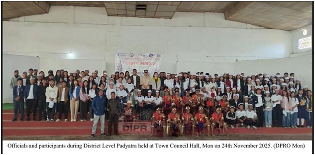November 24, 2025, 05:32 PM: Sadar Vallabhbhai Patellaga150th Birth anniversarylaga anniversary tey, District Level Padyatraloishey, Unity March logotey, kuntutohhoiley My Bharat Mon para organize kurialagathakishey, District Administration Mon logotey coordinate kurikena, 24th November, 2025 tey, Mon helipad para Town Councill Hall, Mon taktey.