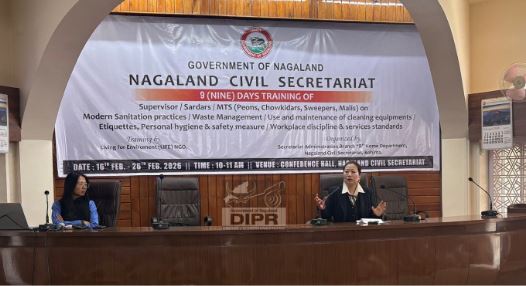 Kohima, February 22, 2026: Supervisors, Sardars aro Multi-Tasking Staff (MTS), Peons. Chowkidars, Sweepers aro Malis khan karne training thake she, Conference Hall, Nagaland Civil Secretariat te, February 23, 2026 laga din te. Training toh Secretariat Administration Branch “B”, Home Department, Government of Nagaland, para organize kurea ase Living for Environment (LIFE) NGO khan logo te.