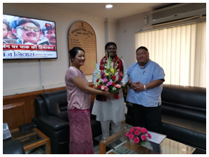 Union minister para etu toh State delegation Minister for Higher & Technical Education aro Tribal Affairs, Temjen Imna Along logode janaise. Monday din union minister ke toh office chamber deh matiya thakise. Tai logode Additional Chief Secretary, Tribal Affairs, Lhoubeilatuo Kire aro DUDA laga department officials khan shaat thakise.