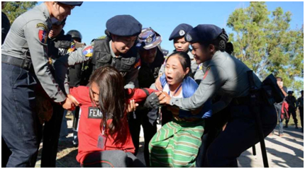 Myanmar police para protestors khan opor te hamla kurishe