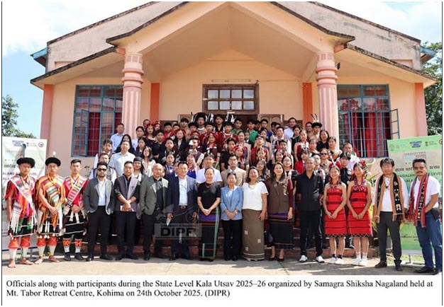 October 27, 2025, 06:41 PM: Samagra Shiksha Nagaland para successful para itu State Level Kala Utsav 2025-26 celebrate kurishey, Mt. Tabor Retreat Centre, Kohima tey, 24th October 2025 tey. Kala Utsav kuntu toh hoiley ekta flagship programme asey, itu Department of School Education and Literacy (DSE&L) laga, Ministry of Education (MoE) toh hoiley artistic talent khan foster aru showcase kuriboley aim kuria laga thakishey, itu Secondary Stage laga student khan laga. Itu event toh hoiley creativity, artistic excellence aru cultural heritage laga spirit celebrate kuria laga asey, itu National Education Policy (NEP) 2020 laga vision eco kuri kena, kuntu toh hoiley arts aru culture laga integration emphasize kuria laga asey, itu educational framework tey.
