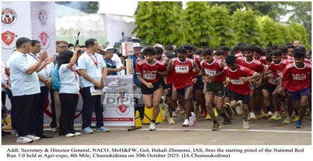 Chumoukedima, October 30 – Nagaland 30th October 2025 te Red Run 3.0 host korishe Agri Expo, 4th Mile, Chümoukedima te. Etu event organize korishe Nagaland State AIDS Control Society (NSACS), in collaboration with National AIDS Control Organisation (NACO) aru Department of Health & Family Welfare (H&FW), Government of Nagaland. Early morning 5:30 te start hoishe, students, youth groups, health workers, police personnel, NGOs aru runners khan all over Nagaland milikena participate korishe, symbolizing unity HIV & AIDS upor te.