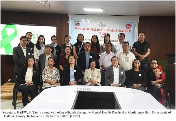 Ekta special programme loishey, 10th October, 2025 tey, itu “Access to Services – Mental Health in Catastrophes and Emergencies” laga theme under tey. Prof. N. Venuh, Pro Vice-Chancellor, Kohima Campus para itu occasion tey grace kurishey, tatey Special Guest hisap buhi kena. Tai para tatey jama kuria manu khan ke encourage kurishey, shanti bisariboley tai khan laga problem khan share kuria tey aru release kuri kena, alag alag healthy exercise khan para, kuntu toh hoiley adopt kuriboley paribo. Dr. Hovisuto Khieya, JRF, ekta DRDO project under tey, itu department laga, tai para tatey jama thaka manu khan itu theme opor tey kotha kurishey aru itu issue khan opor tey discuss kurishey, kuntu toh hoiley bishi para mental health opor tey chinta thaki kena asey, aji kali laga society tey. Tai para mental health service khanlagi thaka emphasize kurishey, particular para conflict khan aru emergency khan laga homoi tey.