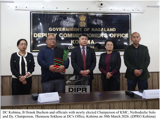 March 31, 2026, 10:58 PM: Neibodzelie Solo (Ward 11)ke sob milikena elect kurishey, ituKohima Municipal Council (KMC)laga Chairperson hisaptey, aruThenusou Sekhose (Ward 6)ke, Deputy Chairpersonhisaptey elect kurishey, March 30, 2026 tey.