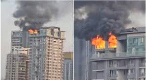 New Delhi, May 30: Noida lah Sector 100 daeekta dangor jui olaishey Lotus Boulevard society dae, air conditioning unit buta bicjedey. Pura flat tho juli jaishey aro bichedey osor wala flat di bhi jui pelaishey, etu society dae.