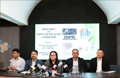 April 21, 2026: LPG aru petroleum product khan laga supply opor tey press conference, Nagaland tey loishey, 21st April, 2026 tey, itu DIPR Conference Hall, New Capital Complex, Kohima tey. Itu conference toh hoiley milai kena organize kuria laga thakishey, Oil Marketing Company khan para, itu Food aru Civil Supply khan laga Department, Nagaland Govt. logotey coordinate kuri kena, itya laga situation opor tey khata para koboley karney, itu state tey ki hoi asey.