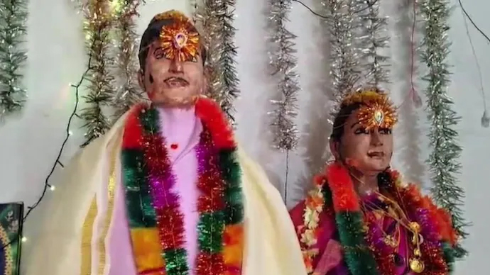 Telangana, 29 March 2026: Ekta couple Telangana laka Mahabubabad district te ekta symbolic wedding ceremony kureh hotai saal taikhan laka mura bacha aro taila maiki karne past 22 saal karne, tadeh ritual toh gradually participation tani ase taikhan laka bosti across pra. Lalu aro Sukkamma taikhan laka bacha Ram Koti ke harai shey 2003 te tai suicide pra mura pichideh kicha taila relationship toh opposed kuri shey maiki laka ghor manu pra. 20 din hoi kina, maiki b suicide pra muri jaishey. Tragedy toh ghor manu ke devastated chari dishey. Sukkamma hisap te, taila bacha olop deri hoina sapna te ahishey aro mandir banabo leh koishey aro shadi kuribo leh. Couple toh subsequently ekta chutu shrine banai shey taikhan laka ghor bitor te aro Ram Koti aro taila maiki laka idols hali shey, taikhan ke eki lokot rakhi shey. Etu hoina, couple toh ceremonial kalyanam kuri shey idols karne hotai saal Sri Rama Navami laka occasion te.