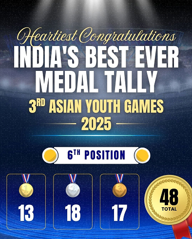 India laga youth khan laga record-breaking success Asian Youth Games 2025 te ekta confident aru ambitious generation laga symbol ase — juntu world te India laga sporting presence ke more strong kori thakishe.
