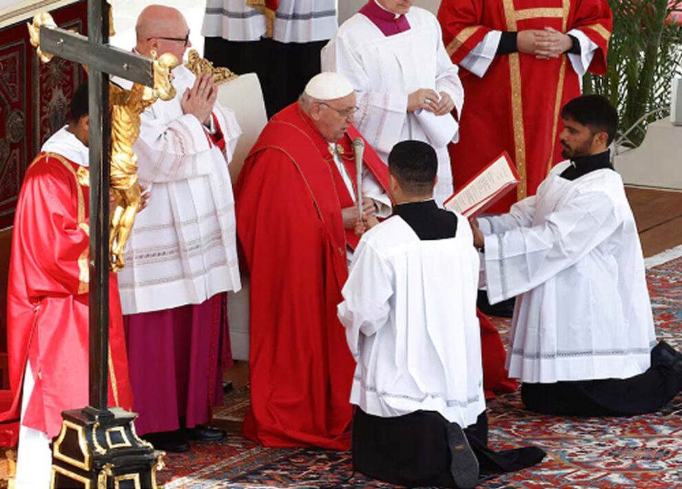 March 24, 2024 : Pope Francis para last minute tey tai laga homily puriboley thaka toh skip kuri dishey, ekta Palm Sunday Mass laga homoi tey, dush azar para bhi bishi manu khan nimitey, St. Peter’s Square tey, hoiley bhi itu service tey preside kuri thakishey, tai laga noon prathana kurishey aru itu crowd phaney laga aas paas tey ghurai jaishey, ekta popemobile tey.