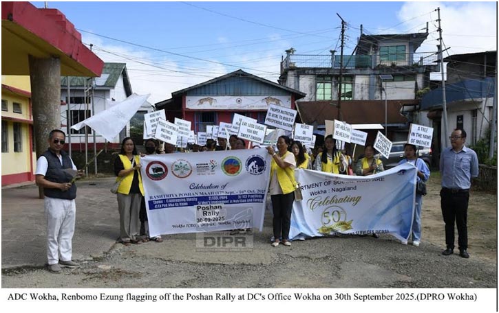September 30, 2025, 08:21 PM: Itu Social Welfare Department toh hoiley, tai khan laga 8th Rashtriya Poshan Maah 2025 celebrate kuri asey, 17th September para 16th October, 2025 tak karney. Itu occasion ke mark kuriboley karney, itu District Programme Officer aru CDPO, Wokha District laga Office para, itu Poshan Maah Rally organize kurishey, 39th September, 2025 tey, nutrition awareness promote kuriboley karney, maiki, bacha khan aru adolescent chukri khan bhitor tey.