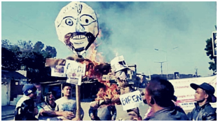 IMPHAL | February 1: Wednesday raati pora shuru korikena 24-hour strike thakiya samoy te Prime Minister Narendra Modi laga putla ke city laga aalag-aalag jakka te Thursday te jolaise aro Manipur laga Yairipok, Thoubal district te putla ke faasi koribole kosish koriya te police pora rukhai dise.