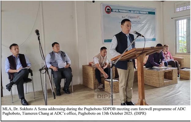 MLA & Chairman SDPDB Pughoboto, Dr. Sukhato A Sema para farewell address tey, bahar jai jaboley thaka ADC, Tiameren Chang ke naam uthai dishey, tai ke ekta best administrator koi di kena, Pughoboto Sub-division tey post hoa laga ekta.