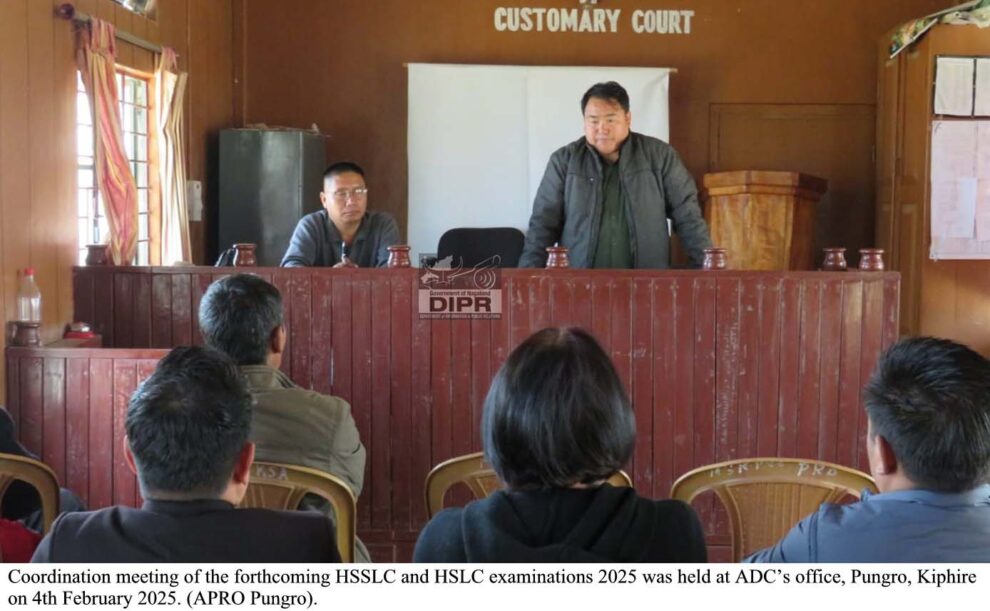 February 04, 2025, 05:16 PM: Itu ahi thaka HSSLC aru HSLC examination khan laga view tey, 2025 tey, ekta coordination meeting loishey, kuntu toh hoiley, itu Additional Deputy Commissioner laga office tey para loishey, 4th February, 2025 tey, kuntu toh hoiley, EAC Yitachu para chair kuria laga thakishey.