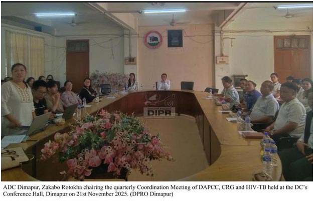 November 22, 2025, 06:11 PM: Itu District AIDS Prevention aru Control Committee (DAPCC), Community Resource Group (CRG) aru HIV-TB CoordinationlagaQuarterly Coordination Meetingloishey, 21st November, 2025 tey, itu DC laga Conference Hall, Dimapur tey para. Itu meeting tohhoiley, itu Dimapur lagaAdditional Deputy Commissioner – ZakaboRotokha para chair kurialagathakishey, kun para tohhoiley sob department khan aru organisation khan ke encourage kurishey, collaborative effort khan kemajbutkuriboley, arubhal health outcome khan nimitey.