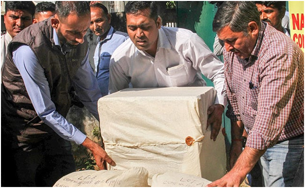 NEW DELHI, NOVEMBER 8 : Apple Cartons laga bitorte Rs. 200 crore daam laga Heroin dawai thali kena Delhi te luijai thaka thuri baise. Etubi Dangor kari ( Truck) bitorte thali kena Jammu aro Kashmir laga Kupwara pora ane thaka. Aro etu thuri baa toh Narcotics Control Bureau pora Thursday din thuri baa laga ase koi kena, ANI khobor pora janaise.Police pora koa hisabte etu dawai toh Azadpur Mandi, North Delhi te luijai thaka laga ase koi kena janaise. Huilebi etu luijai thaka toh NCB pora Highway Toll Plaza, Jammu aro Kashmir laga te thuri baa huise koi kena janaise. Aro etu kari jula manu ke thurikena Police kan pora kotha hutha-huthe kuri ase koise.