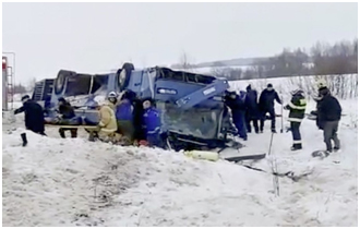 Emergency situations Ministry koishe bus toh 45 manu bhuki kena thakishe. South Moscow para 190 km (118 miles) genika dur rasta te bus toh geri kena accidents hoishe.