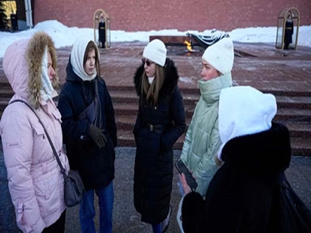 February 4, 2024: Saturday din Central Moscow deh foreign press organization para kom seh kom 20 journalist kan detained hui jai shae. President Vladimir Putin laka election headquarters bahar deh demonstration hui taki shae kuteh Russian soldiers laka maike kan soldiers kan keh Ukraine para wapas ani d b kui nah demand kuri taki shae, media outlets para report kuri shae.
