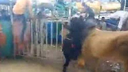 Saand ekta Ramleela celebrations dey maarishey Hapur dey, mahila, bacha ke jokhum kurishey.