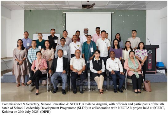 July 30, 2025 : Itu School Leadership Development Programme (SLDP) laga 7th batch, 50 School Head khan nimitey, kuntu toh hoiley 29th July, 2025 tey shuru kurishey, SCERT, Kohima tey, itu NECTAR project logotey. Itu toh hoiley ekta-muhina laga certificate programme asey kuntu toh hoiley saatta key area khan tey focus kuriboley asey: School Leadership opor tey Perspective, Developing Self, Transforming Teaching-Learning Process, Building aru Leading Teams, Leading Innovations, Leading Partnership aru School Education tey Initiative khan.
