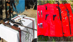 December 09, 2024, 04:04 PM : Ekta series laga successful joint operation tey, Indian Army, Assam Rifles para Manipur Police aru alag security forces khan logotey coordinate kuri kena, 14 hatiyar, ammunition aru alag war tey chulawa saman khan recover kurishey, hill aru valley region khan duita tey para bhi, itu Manipur laga Churachandpur, Kangpokpi aru Thoubal district khan tey. Thik thak information pai kena, itu opor tey act kuri kena, arms aru ammunition thaka opor tey, general area tey, Loiching Ridge laga, Kangpokpi district tey, Assam Rifles aru Manipur Police para ekta sniper rifle, ekta Lathode gun, duita 9mm pistol khan aru ekta SBBL gun, ammunition (guli) khan aru war tey chulawa saman khan nishina paishey, 02nd December, 2024 tey. Kotey, ekta 7.62 mm SLR rifle, ekta 12 bore single-barrel gun aru ekta 9 mm pistol, guli khan aru war tey chulawa saman khan recover kurishey, itu Churachandpur district laga Phaikhothang village para. Thoubal district tey, Indian Army, Assam Rifles aru Manipur Police para ekta SLR, ekta Carbine Machine Gun, ekta Double Barrel Rifle, duita Pistol khan, Grenade khan, guli khan aru alag war tey chulawa saman khan paishey, Fungei Ching tey para, Leirongthel Pitra aru Pechi osor tey, 04th aru 6th December, 2024 tey, aru eneka hey, ekta hatiyar, guli khan aru war tey chulawa saman khan Pechi tey para recover kurishey. Itu dhuriboley para saman khan toh hoiley Manipur laga Police laga haath tey di dishey, dispose kuri diboley karney.