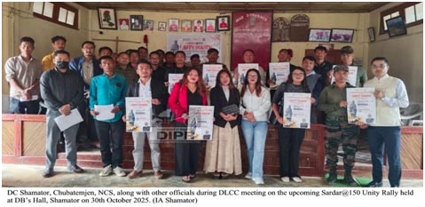 Shamator, October 30 – 30th October 2025 te DB’s Hall, Shamator te upcoming Sardar@150 Unity Rally laga District Level Core Committee (DLCC) meeting rakha hoishe. Meeting chair korishe Deputy Commissioner, Shamator, Chubatemjen, NCS, aru attend korishe Superintendent of Police, Shamator, all Heads of Offices, aru representatives from Yimkhiung Tribal Council, Tikhir Tribal Council, Shamator Town Public Forum, Shamator Students’ Union, SEWA, aru other dignitaries.