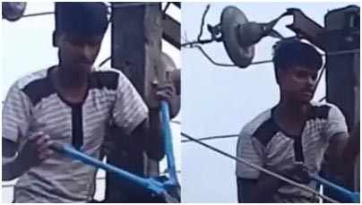 India, 4 September 2025: Ekta mota electric pole te uthi shey aro power lines kati dishey bosti laka, reportedly uncanny reason karne. Incident toh, viral video te dhuri shey social media te, dikhi paishey mota pole te uthi shey dangor pliers lokot aro wires khan kata shuru kuri shey, etu pra pura bosti laka power kati dishey.
