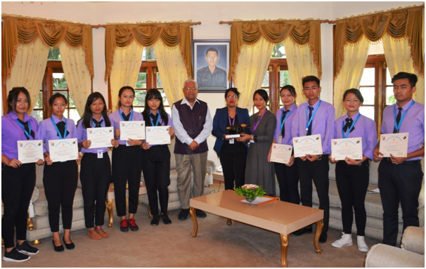 KOHIMA, SEPTEMBER 18 : Nagaland Governor, Shri PB Acharya toh St Josephs University, Dimapur laga Students kan ke kotha kurise. Etubi Raj Bhavan Kohima te 18th September 2018 te ahe kena Swachh Bharat Mission Summer Internship ke hisha kura ke.
