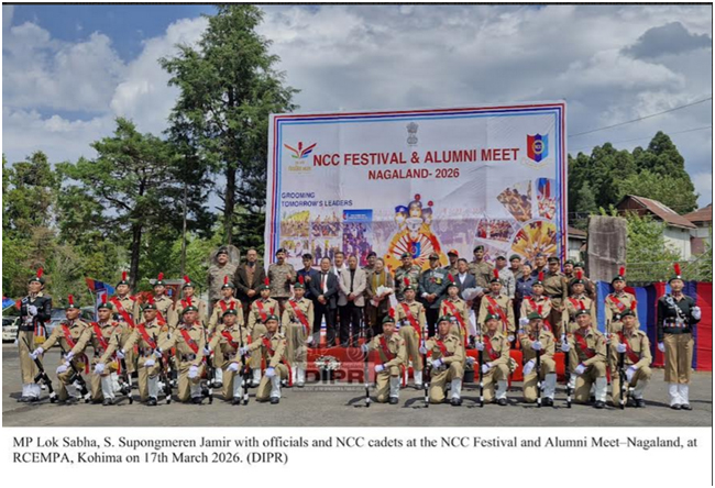 March 17, 2026, 8:06 PM:Parliament (Lok Sabha), Nagaland laga Member – S. Supongmeren Jamir, tai para itu National Cadet Corps (NCC) Festival aru Alumni Meet–Nagaland attend kurishey, tai tatey Chief guest hisap buhi kena, itu Regional Centre of Excellence for Music and Performing Arts (RCEMPA), Kohima tey, 17th March, 2026 tey.