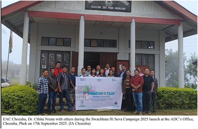 September 17, 2025, 07:50 PM: Itu state-level laga Swachhata Hi Seva 2025 loishey, 17th September, 2025 tey, Old NST, Kohima tey, tatey Special Guest, MLA aru itu Environment & Climate Change opor laga NLA Committee laga Chairperson – Achumbemo Kikon thaki kena, tai para formal para itu program ke launch kurishey, itu state tey aru tai para kosom khawa laga lead kurishey.