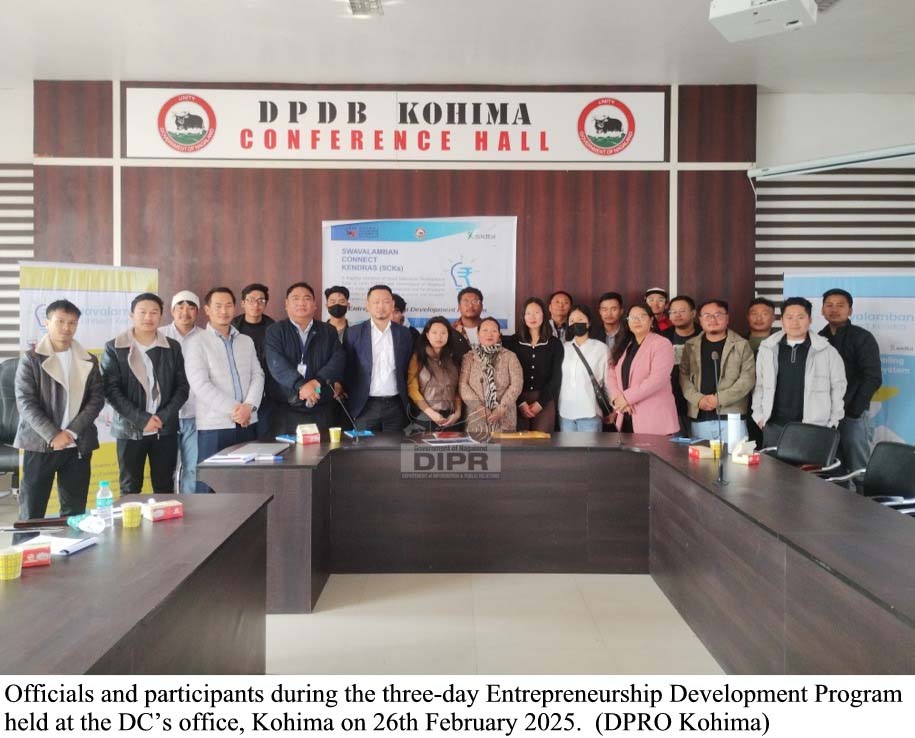 February 26, 2025, 08:17 PM: Itu teen din laga Entrepreneurship Development Program (EDP), toh hoiley Swavalamban Connect Kendras para organize kurishey, itu District Administration logotey aru alag alag line department logotey collaborate kuri kena, kuntu toh hoiley successful para shuru kurishey, Deputy Commissioner laga Office tey para, Kohima laga, 26th February, 2025 tey. 20 aspire thaka laga entrepreneur khan participate kuri kena, itu program toh hoiley budding entrepreneur khan ke essential gyan khan aru skill khan equip kuri diboley aim kuri asey, itu entrepreneurial landscape laga raasta dikhaboley aru itu jaga laga economical growth ke contribute kuriboley.