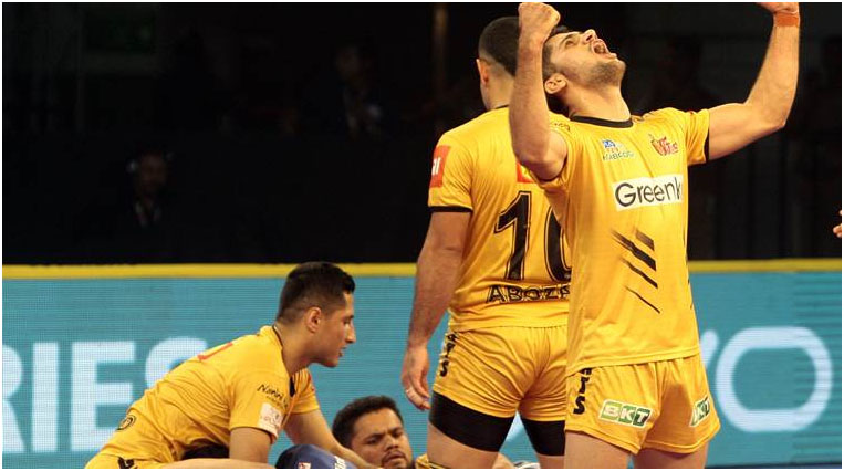 Agencies, 20 October: Friday din Vivo Pro Kabaddi Season VI deh Telugu Titans aro defending champions Patna Pirates khela thakise. Etu time deh Telugu Titans 35-31 score pora jeti lowah thakise.  Pardeep pora mara galdi howah aro tai khan laga defence komchor howah karni patna toh second par aro harise. Patna karni Manjeet aro Vijay pora meli kena 16 raid points mara thakise. Hoilebe etu toh kafi thaga nai. Telugu Titans nemide Rahul Chaudhari pora seven raid points mara thakise. Telugu Titans defence toh ektum phal pora suru howah thakise. Tai khan PardeepNarwal logode bench deh pothaise aro tui minutes bechide 2-0 pora agae deh thakise. Third minutes time deh Nilesh Salunke pora Titans karni tuita raid points mara karni team toh 4-0 pora agae deh thakise.  Patna Pirates pora tuita raid points mara karni team toh ninth minute deh lead thakise. Pardeep pora 10 minutes time deh ekta goal thala pora Patna Pirates toh 8-6 pora agae deh thakise. Tai pora aro be next minute time deh tui-ta raid points mara karni Patna 11-9 pora agae deh thakise. Chaudhari’s laga khel karni pora Telugu Titans toh first half deh dukh powah thakise. Half kothom hobo kowah time deh Patna Pirates toh 17-14 pora agae deh thakise. 27 mintes bechide Telugu Titans pora tuita points lowah thakise. Etu pora tai khan 25-21 pora agae deh thakise. Second half time deh Pardeep pora 10 minutes time deh ekta points lowah thakise. 33rd minutes time deh Telugu Titans toh ektum phal pora kheli kena 29-28 pora agae deh thakise. Five minute pora be komti time bachi kena thaga time deh Manjeet  pora ekta points lowah thakise. Etu pora Patna 30-30 howah thakise. Mighani pora Pardeep logode bench deh potha thakise aro Telugu Titans logode 32-31pora agae korideya thakise. Mohisn Maghsoudlou pora 39 minutes time deh ek-ta points lowah pora Titans 33-31 pora agae deh thakise.