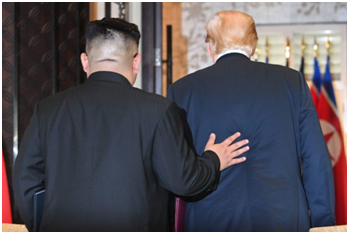 Pyongyang aro Washington majote olop moina bhitor te tensions toh namishe. Hoile bhi etu kotha te eku guarantee nai ke Kim aro Trump majote US laga tarika para necular hatiyar laga program toh North Korea para accept kuribo. Jua June te etu duita leaders toh Singapore te lok kurishe. Etu toh US aro North Korea laga leaders khan eki logote bhuhishe.