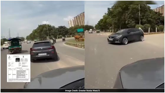 Viral video dikhai shey Noida manu dangerous gari stunt kuri thaka, police Rs 57,000 fine dishey