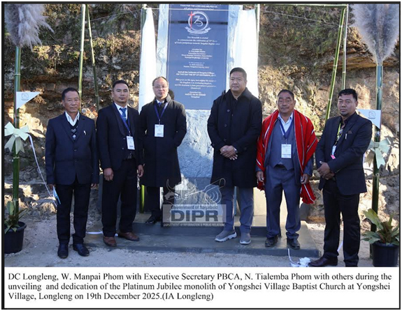 December 22, 2025, 08:02 PM: Yongshei Village Baptist Church, Longlengl aga 75th anniversary laga celebration kurishey, 19th para 21st December 2025 taktey, itutheme “Thus Far The Lord Has Helped Us”tey. Phom Baptist Christian Association, (PBCA)lagaExecutive Secretary – N. Tialemba Phom para Platinum jubilee Monolith unveil kurishey, Yongshei Baptist Churchlaga. Itu Platinum Jubilee stoneteylikhi di kenathakatoh“How great are His signs, how mighty His wonders! His Kingdom is an everlasting kingdom, and His dominion is from generation to generation”, (Daniel 4:3) quote likhikenaasey.